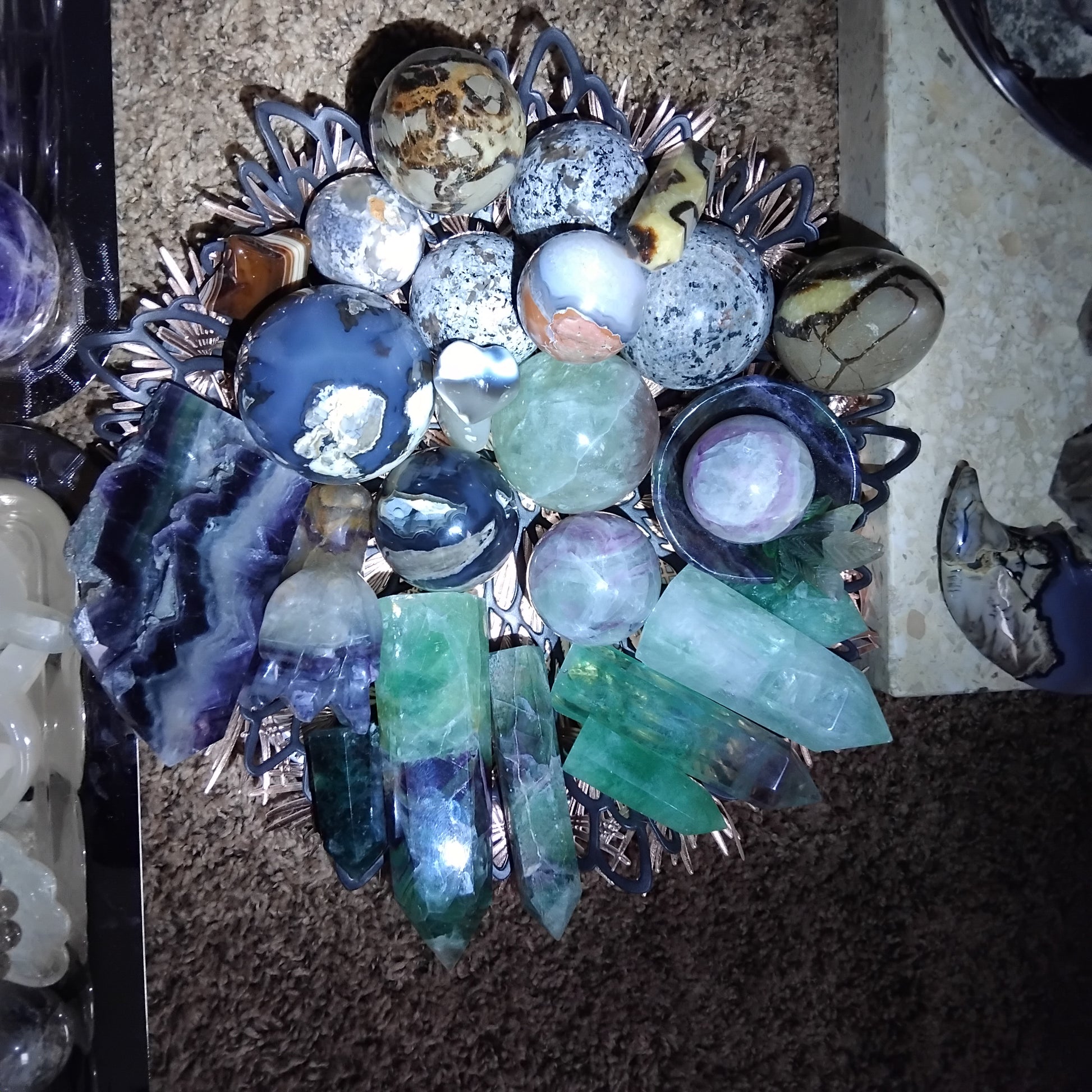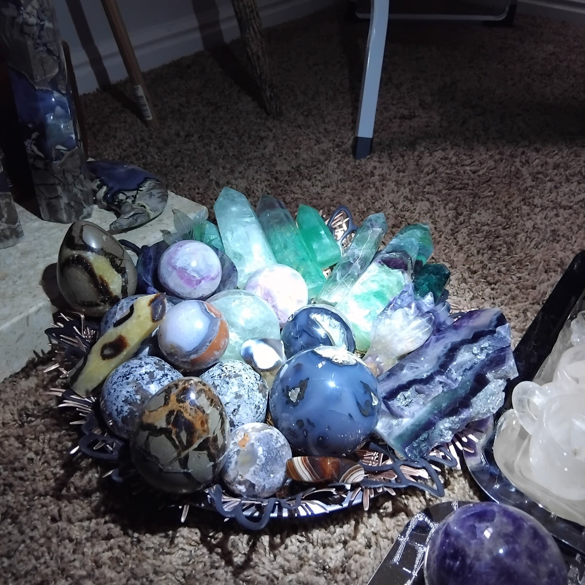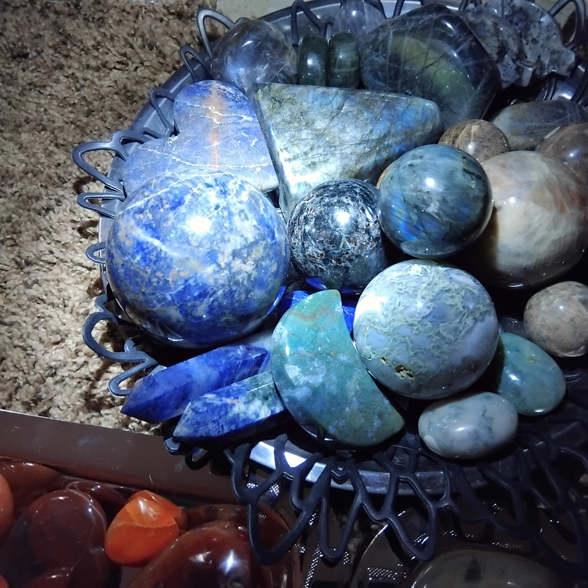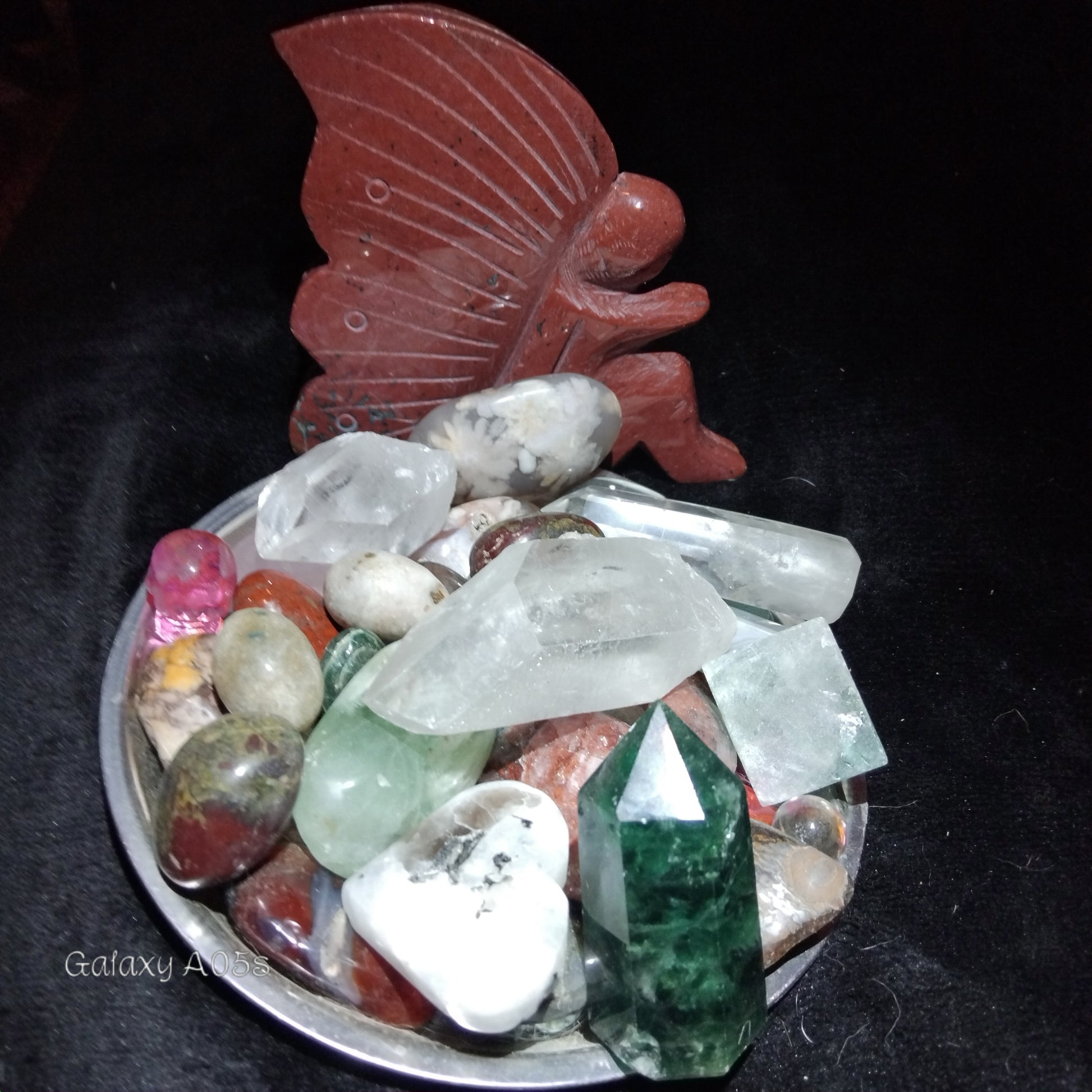 Quartz varieties, fluorite, pyrite, calcite, moonstone, opal, carnelian, agate, if it's not listed, just ask! All orders come with stone description, info and locale. Customize whatever you like in your specialty made bag, box or metal plate for showcase.