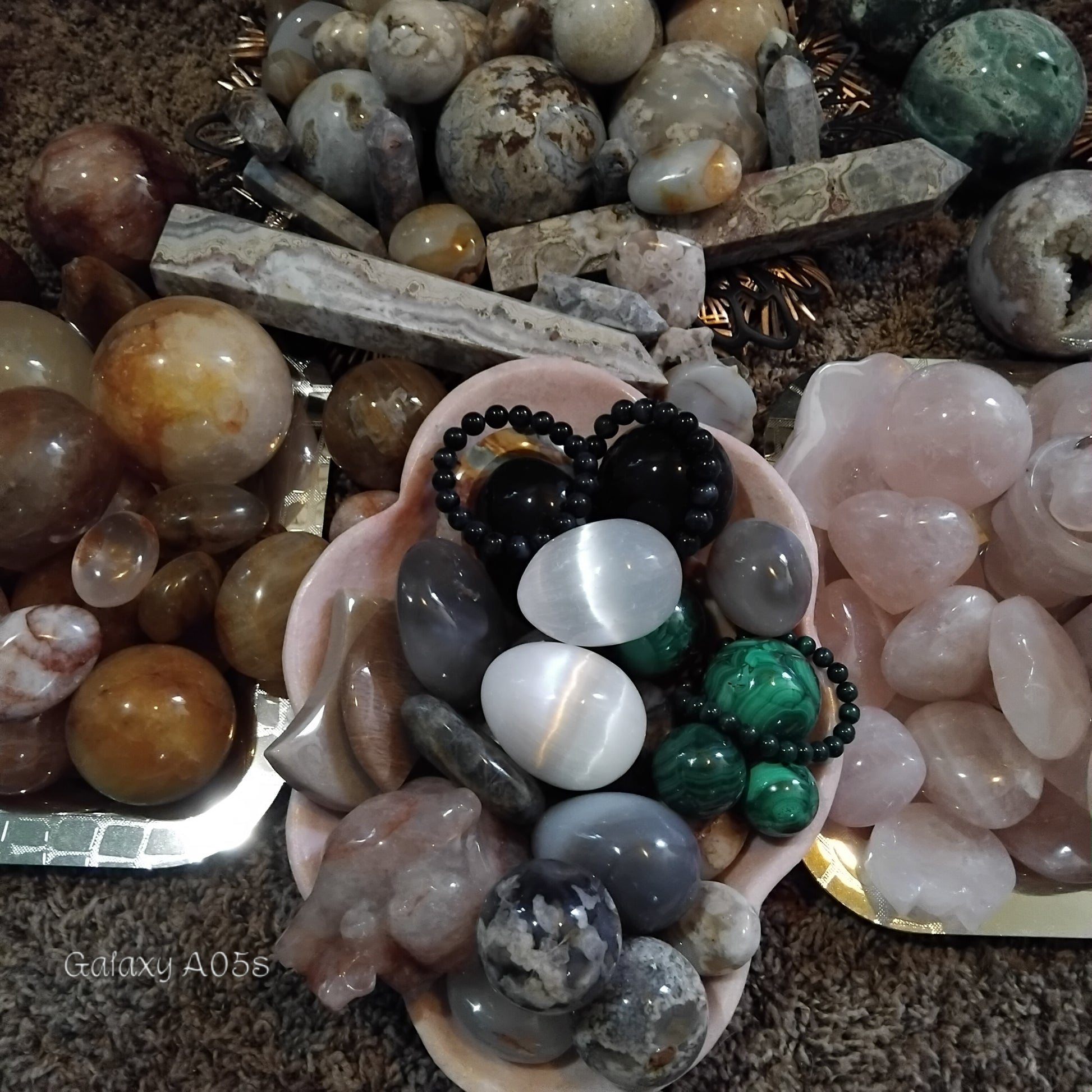 Minerals, crystals and magical trinkets- gift bags, boxes and display plates. Quartz, pyrite, calcite, opal, moonstone, lepidolite, beryl, topaz, labradorite, jasper, agate, just ask, we've got it!